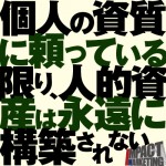 / 最終更新日時 : impact-m 05.人材育成 従業員個人の資質に頼っている限り、人的資産は永遠に構築されない どもっ!商売力養成コンサルタントの福谷です。 優秀な営業マン、優秀な店長、優秀な経理、優秀な部下社員、優秀なアルバイト。 多くの方が、どうせならスキルやモチベーションの高い、優秀な人材に囲まれて仕事をしたいと思っています […]